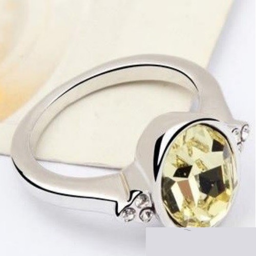 Okrúhly kamienkový prsteň, žltobiely, zdobený kryštálom Swarovski, 8