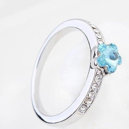 Prsteň v tvare kvetu, Aquamarine, zdobený kryštálmi Swarovski, 7.5
