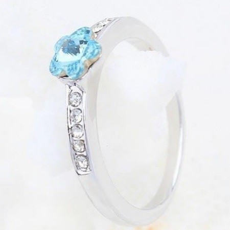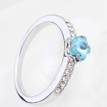 Prsteň v tvare kvetu, Aquamarine, zdobený kryštálmi Swarovski, 8.5