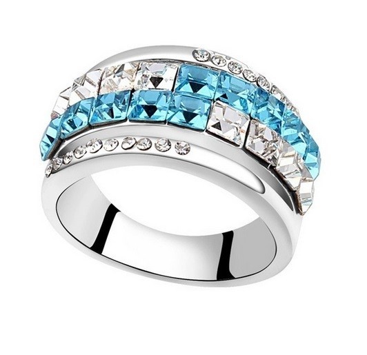 Kubický kamienkový prsteň, Aquamarine, zdobený kryštálmi Swarovski, 6.5