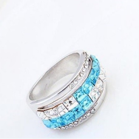 Prsteň s kubickým kameňom, Aquamarine, zdobený kryštálmi Swarovski, 8.5