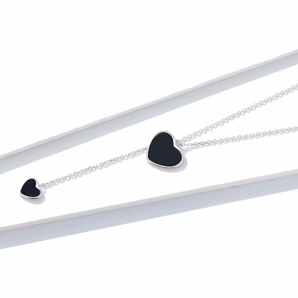 Ez az elegáns ezüst nyaklánc a fekete szív motívummal tökéletes kiegészítője lehet bármilyen öltözéknek, legyen az alkalmi vagy hétköznapi viselet. A 925 sterling ezüst alapanyag és a platinabevonat garantálja a tartósságot és a ragyogást, míg a fekete zománc finom kontrasztot teremt, kiemelve a szív formájának finomságát és eleganciáját. A szív motívum az évszázadok során a szeretet és az érzelmek szimbólumává vált, emlékeztetve viselőjét a mély érzelmi kötelékekre és a szeretet erejére. Az állítható hosszúságnak köszönhetően (42+3 cm) könnyen igazítható a kívánt méretre, így minden stílushoz tökéletesen illeszkedik. Ez a nyaklánc nemcsak önmagad kényeztetésére, hanem ajándéknak is ideális választás, ha szeretnél valakit meglepni egy igazán különleges és szívhez szóló ékszerrel.