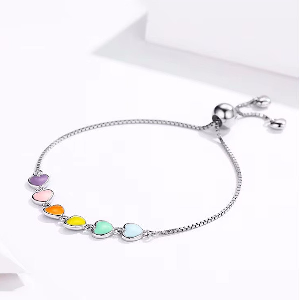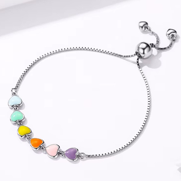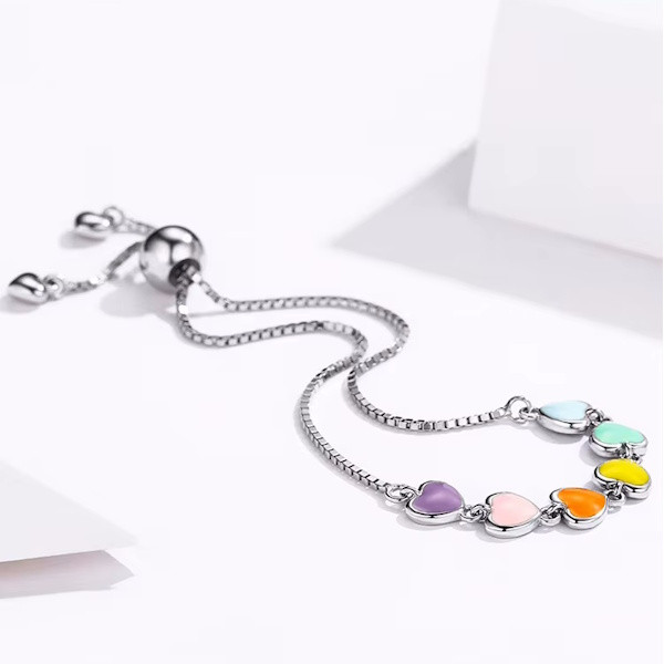 Ez a gyönyörű ezüst karkötő színes szívekkel nemcsak elegáns kiegészítő, hanem szimbóluma is a szeretetnek és az összetartozásnak. A szív motívum az ókor óta a szerelem és az érzelmek jelképe, így ez a karkötő tökéletes választás lehet, ha különleges ajándékot keresel szeretteid számára.