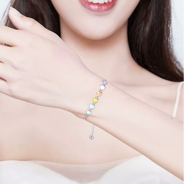 A 925 sterling ezüst alapanyag biztosítja a tartósságot és a minőséget, míg a színes zománcozás modern és játékos megjelenést kölcsönöz a karkötőnek. Akár egy elegáns estélyre, akár mindennapi viseletként is tökéletesen megállja a helyét.