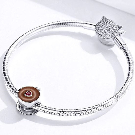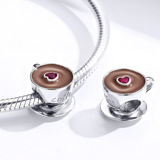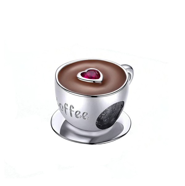Platinou potiahnutý prívesok na šálku zo striebra s červeným zirkónovým kryštálom. Dá sa nosiť na náramku alebo náhrdelníku.