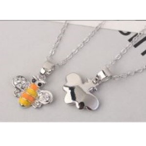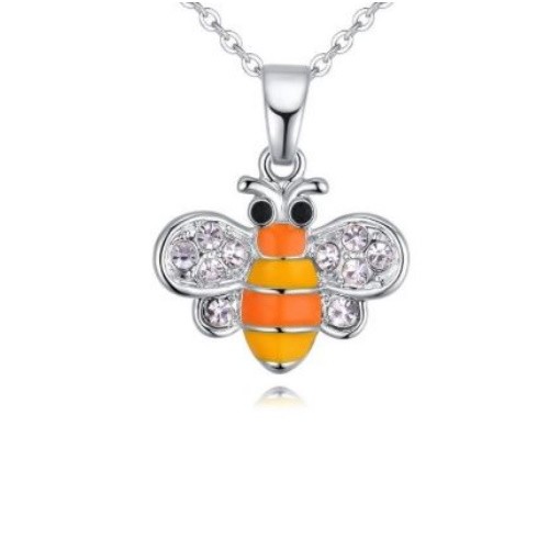 Strieborný náhrdelník s príveskom včielka zdobený kryštálmi. Dĺžka náhrdelníka je 40-45 cm, veľkosť prívesku je 1,6 x 1,9 cm.