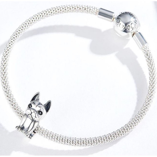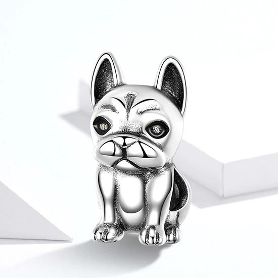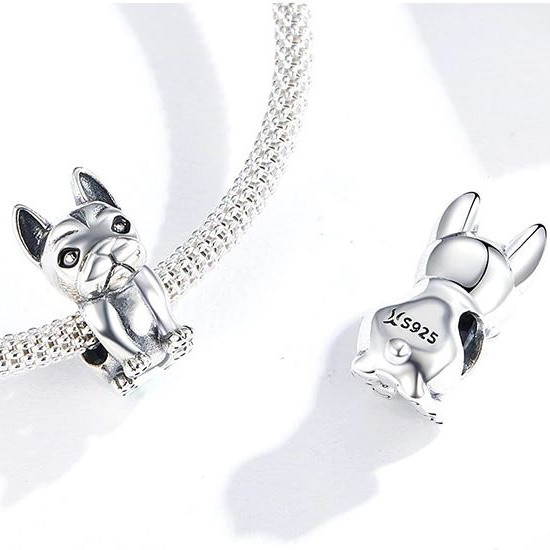 Kúzlo zobrazujúce francúzskeho buldočka, vyrobené zo striebra, na náramok alebo náhrdelník. Jeho rozmer je 1,5 x 0,7 cm. Hmotnosť cca. 2,5 g.