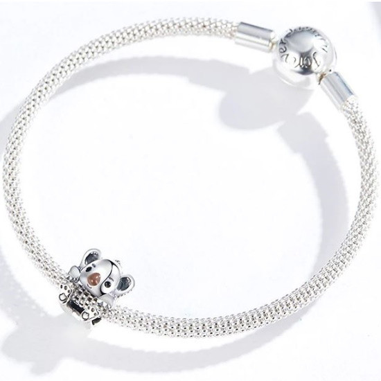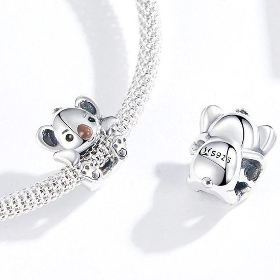Strieborné kúzlo zobrazujúce koalu na náramky a náhrdelníky. Veľkosť 1,1 x 0,9 cm, hmotnosť cca. 1,4 g.