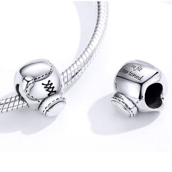 Strieborné kúzlo zobrazujúce boxerské rukavice, na náramok alebo náhrdelník. Jeho rozmer je 1,2 x 0,9 cm. Hmotnosť cca. 2,4 g.