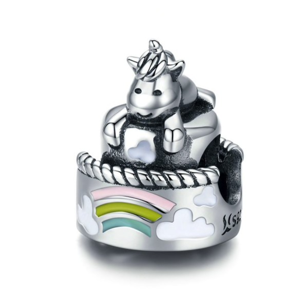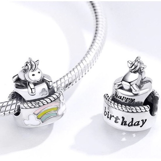 Narodeninová torta s jednorožcom - prívesok vyrobený zo striebra. Dá sa nosiť na náramku alebo náhrdelníku. Veľkosť 1 x 1,4 cm, hmotnosť cca. 3,2 g.