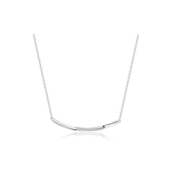 Strieborný náhrdelník s príveskom v minimalistickom štýle zdobený zirkónovým kryštálom. Náhrdelník je dlhý 45 cm a váži 2,4 g.