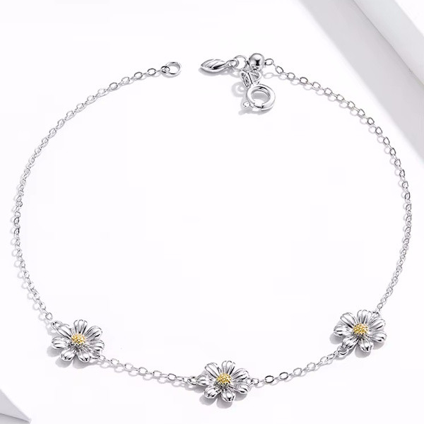 Fedezd fel az elegancia és a természet harmóniáját ezzel a lenyűgöző ezüst karkötővel, amelyet finom ékszerüveg díszít. Az 925 sterling ezüstből készült karkötő tökéletes kiegészítője lehet bármely outfitnek, legyen szó hétköznapi viseletről vagy egy különleges alkalomról. A virág motívum a természet szépségét és a megújulás erejét szimbolizálja, ami remek választás lehet, ha egy apró, de jelentőségteljes ajándékot keresel.