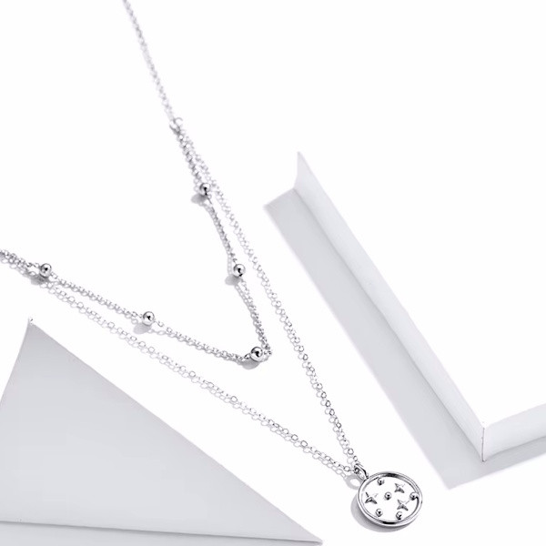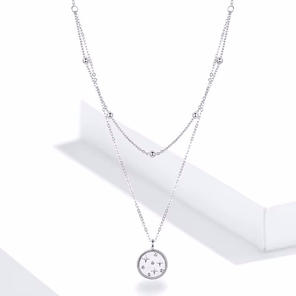 Lépj be a csillagok világába ezzel a káprázatos ezüst nyaklánccal, amely gyönyörű csillagos medállal hódít. A 925 sterling ezüstből készült ékszer platinabevonatot kapott, mely biztosítja a hosszan tartó csillogást és eleganciát. A 45 cm hosszúságú nyaklánc finom, mégis figyelemfelkeltő megjelenést kölcsönöz viselőjének. A csillag motívum az égbolt misztikus jelképe, amely az álmok és vágyak szimbóluma. Ősidők óta inspirálja az embereket, hiszen az éjszakai égbolt titokzatos szépségét idézi meg. Tökéletes ajándék lehet szeretteidnek, akik szeretik az egyedi és jelentéssel bíró ékszereket. Egy ilyen darab biztosan mosolyt csal majd a megajándékozott arcára, és különleges módon fejezi ki az iránta érzett szeretetedet. Engedd, hogy ez a csillagos nyaklánc ragyogja be a mindennapokat!
