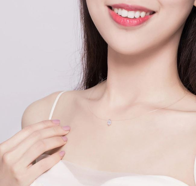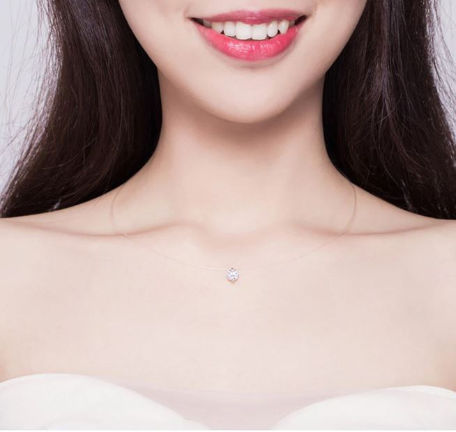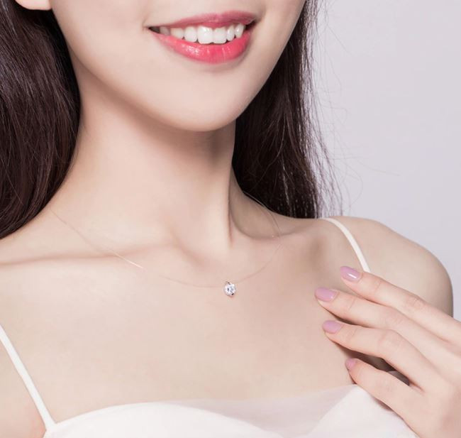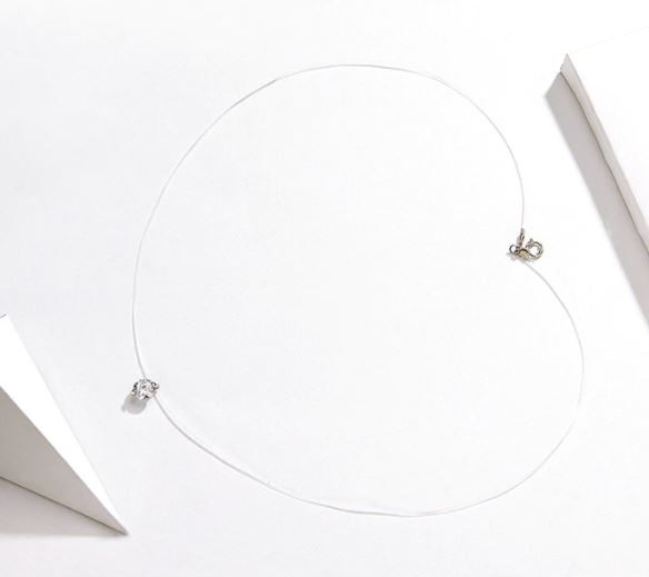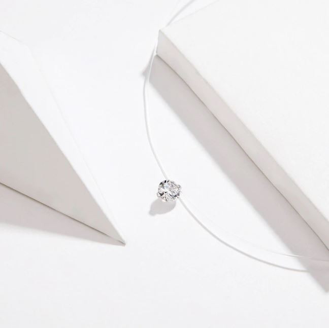 Transparentný náhrdelník z Damilu a striebra s príveskom z kryštálu. Retiazka je dlhá 40 cm a váži 1,0 g.