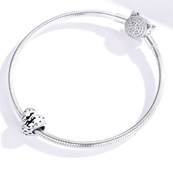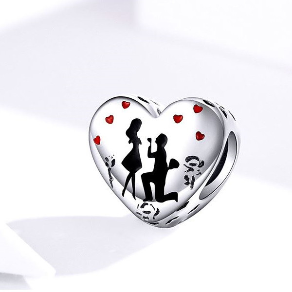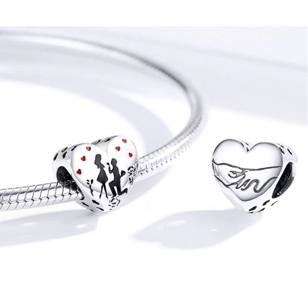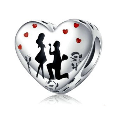 Prívesok v tvare srdca vyrobený zo striebra s motívom znázorňujúcim žiadosť o dievča. Dá sa nosiť na náhrdelníku alebo náramku. Veľkosť 1 x 1 cm.