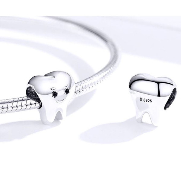 Vyrobený zo striebra, prívesok v tvare zuba na náramok a náhrdelník. Veľkosť 1 x 1,1 cm.