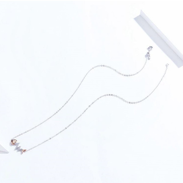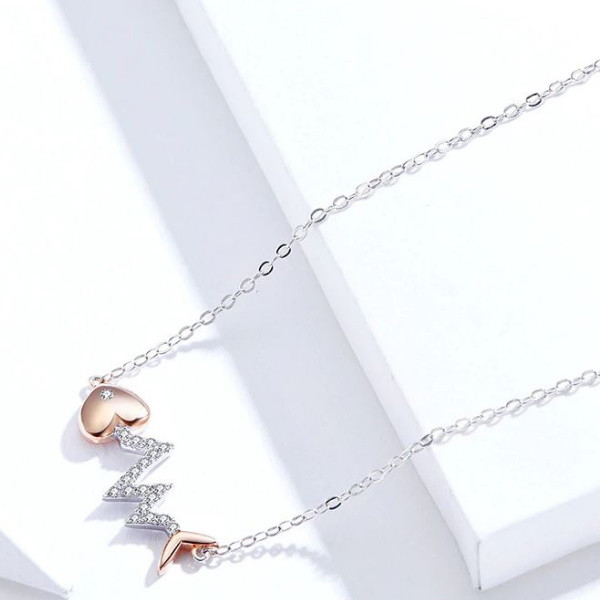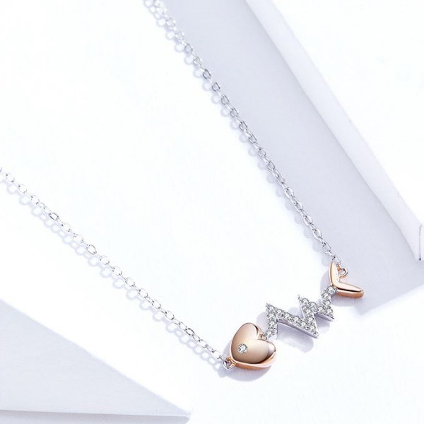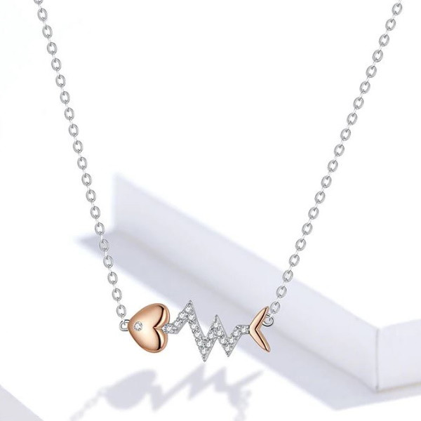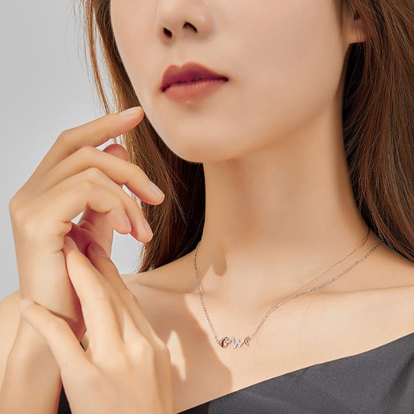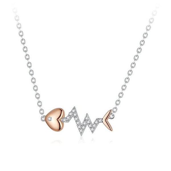 Strieborný náhrdelník s príveskom rybia kosť, ružové zlato