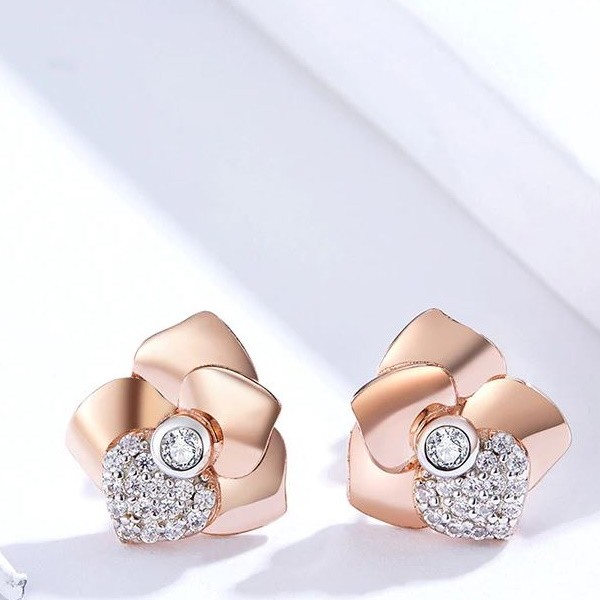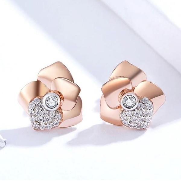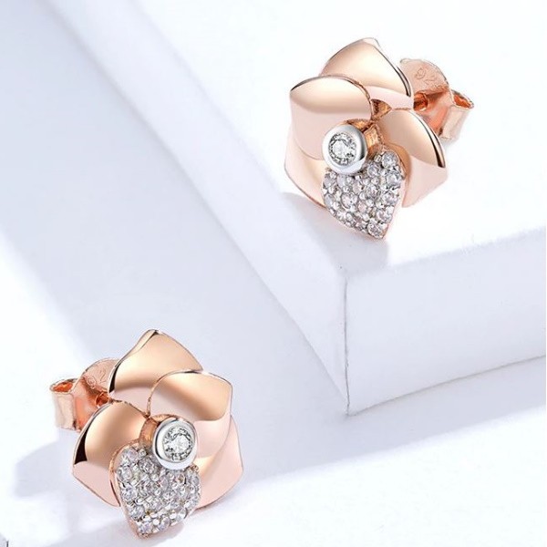Strieborné náušnice, ruža so srdiečkom, rosegold