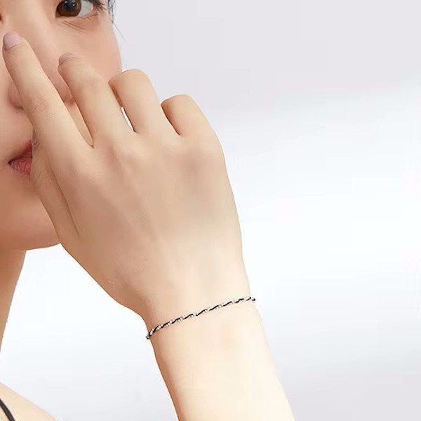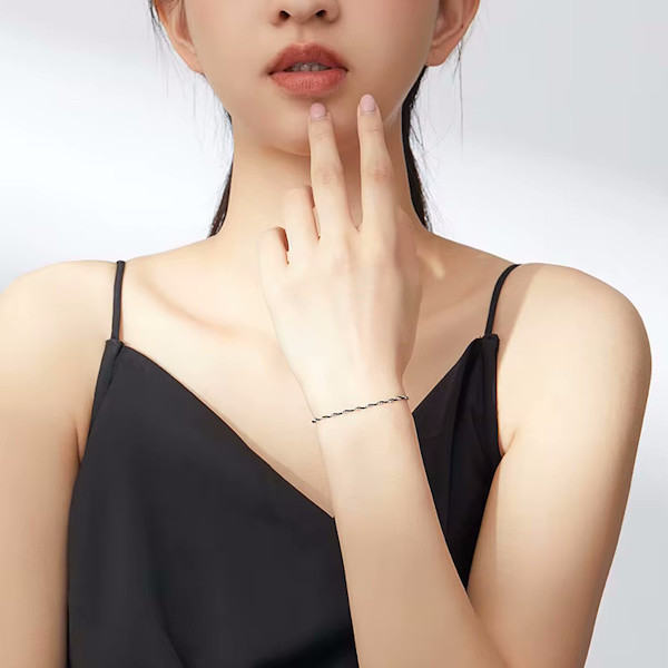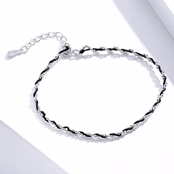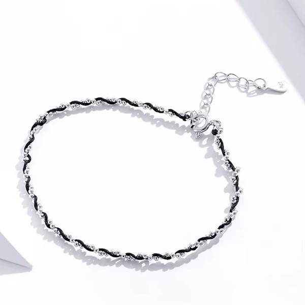 Ez az elegáns ezüst karkötő tökéletes választás minden stílusos nő számára. A 925 sterling ezüst alapanyag platinabevonattal van ellátva, amely nemcsak tartósságot biztosít, hanem különleges fényt is kölcsönöz a karkötőnek. A fekete zsinór modern megjelenést ad a karkötőnek, amely így könnyedén kombinálható bármilyen öltözékkel, legyen az hétköznapi vagy alkalmi.