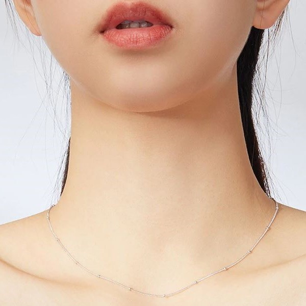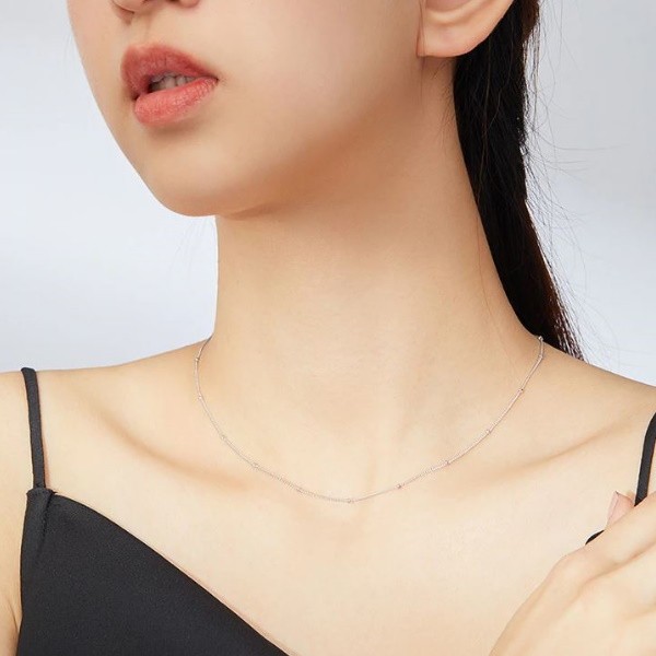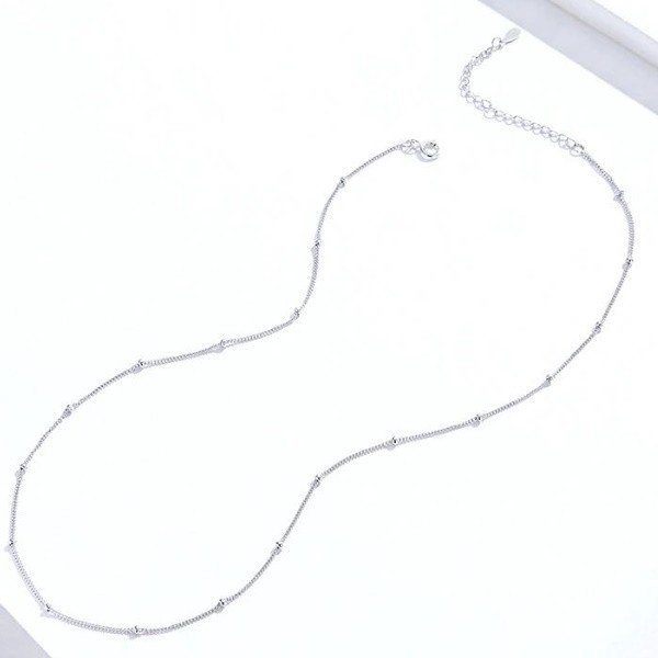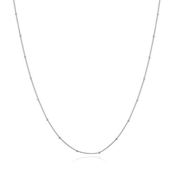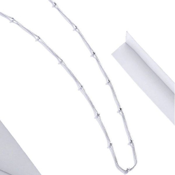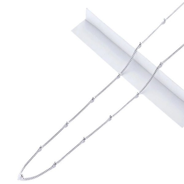 Platinovaný jednoduchý strieborný náhrdelník zdobený malými guličkami. Dĺžka 40-45 cm, váha 1,9 gramu.