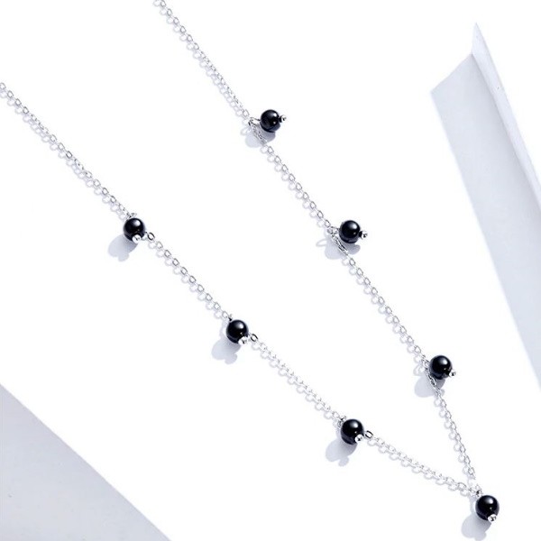 Strieborný náhrdelník s čiernymi perlami