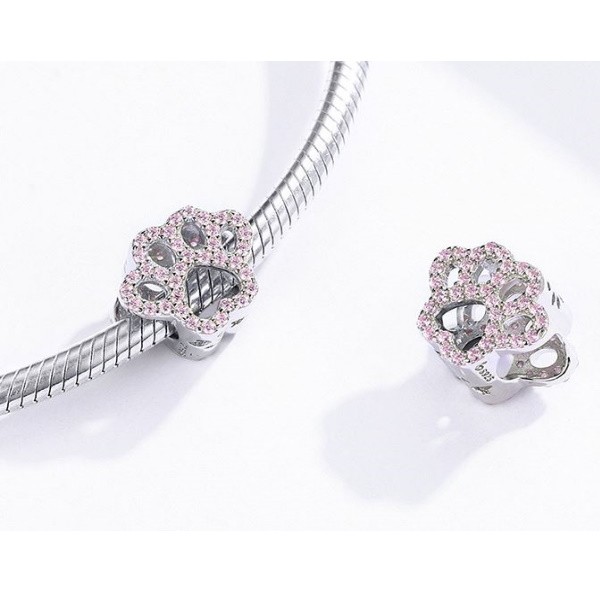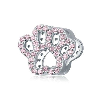 Strieborný prívesok na labky, ružový