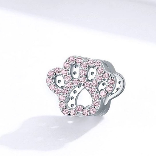 Strieborný prívesok na labku, ružový