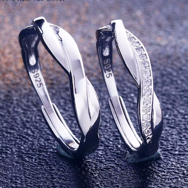 Fedezd fel az elegancia és a romantika tökéletes egyensúlyát ezzel a gyönyörű ezüst karikagyűrű párral! Kiváló minőségű 925 sterling ezüstből készült, így időtálló választás mindennapi viseletre vagy különleges alkalmakra. A női gyűrű cirkóniumkristállyal díszített, amely finom csillogást kölcsönöz viselőjének, miközben a csavart dizájn modern és stílusos megjelenést biztosít.