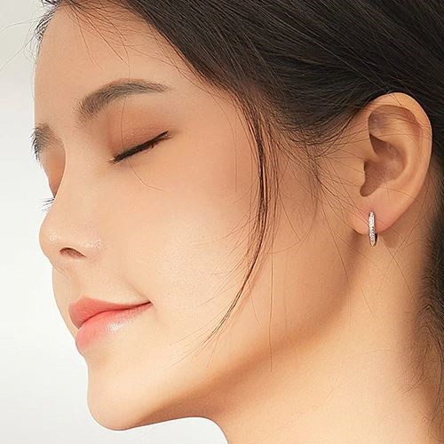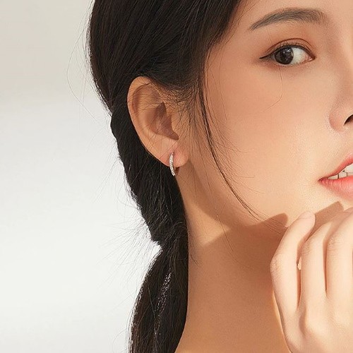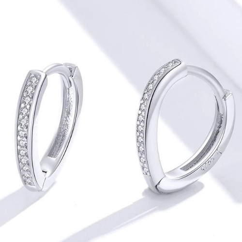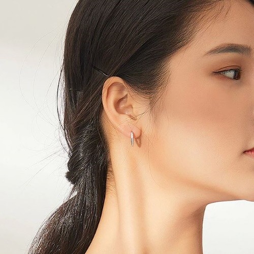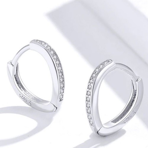 Náušnice vyrobené zo striebra, zdobené kryštálmi zirkónu, s platinovou povrchovou úpravou. Veľkosť 1,3 x 1,3 cm, váha 1,7 g.