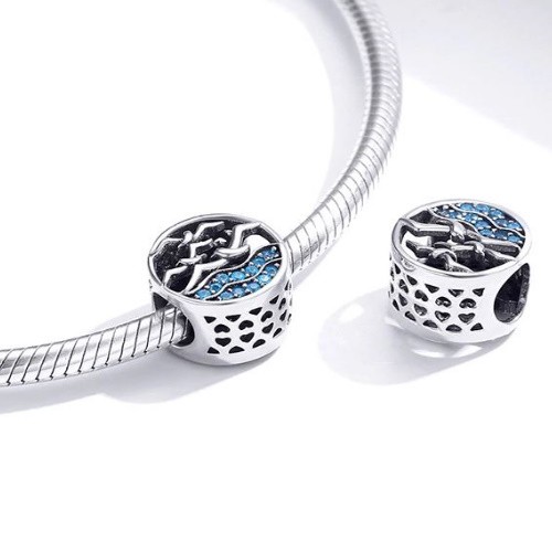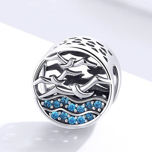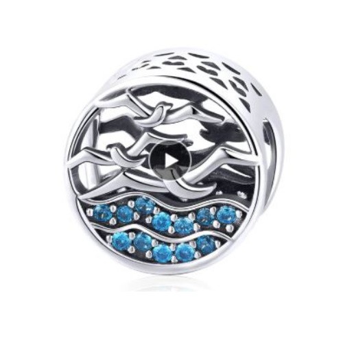 Zo striebra, kúzlo zobrazujúce čajky a morské vlny zdobené zirkónovým kryštálom. náramok, náhrdelník. Veľkosť 1,1 x 1 cm.