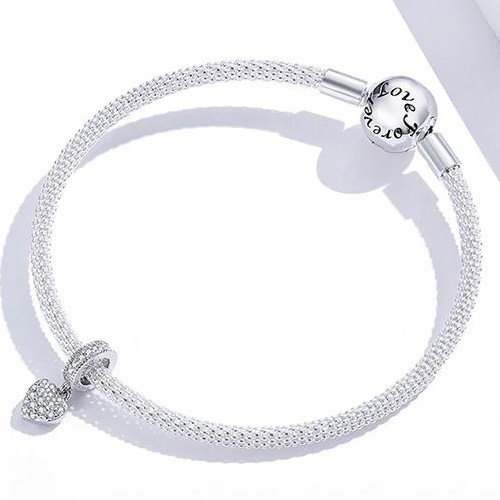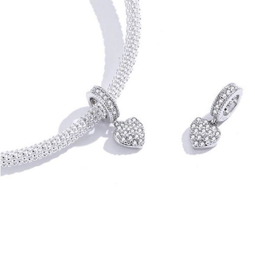 Vyrobený zo striebra, zdobený bielym zirkónovým kryštálom na prívesok na náhrdelník a náramok. Veľkosť 1,4 x 0,6 cm.