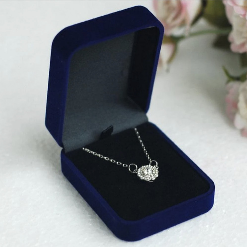 Zamatová šperkovnica na náhrdelník, modrá