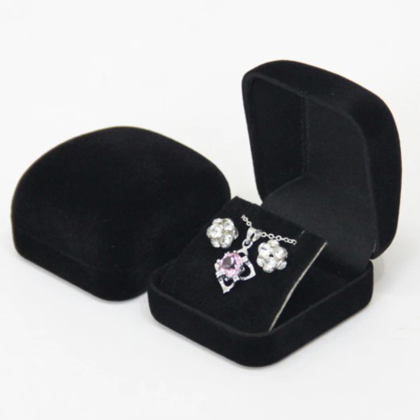 Zamatová šperkovnica na náhrdelník, náušnice a set, čierna