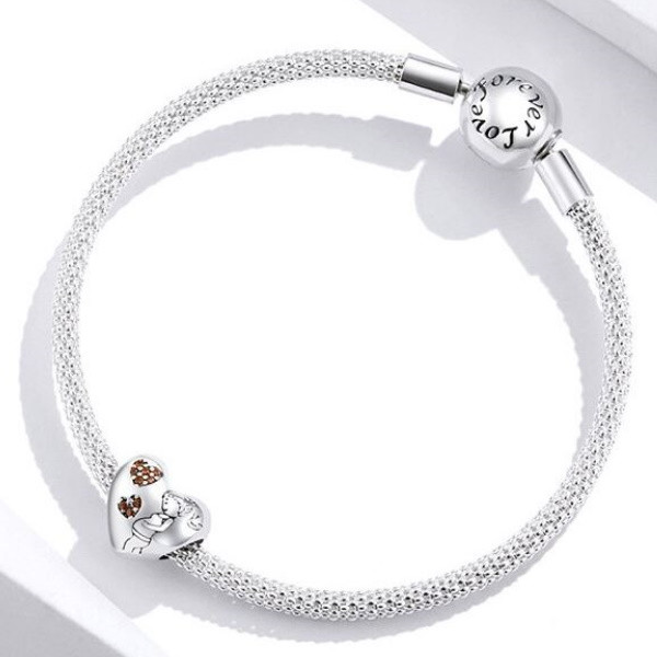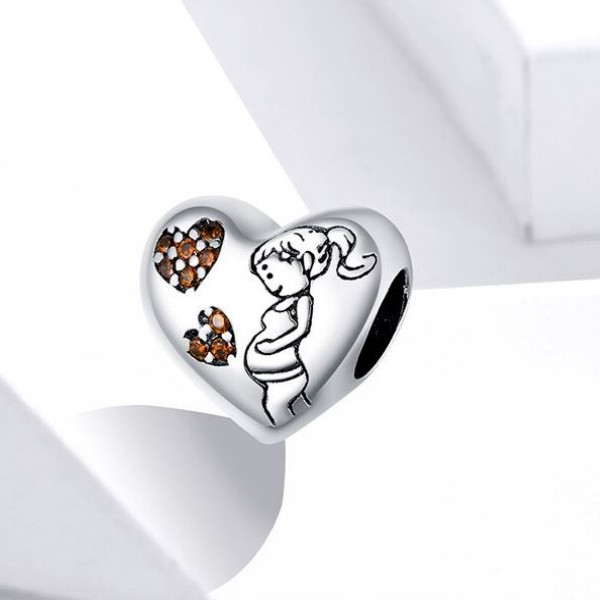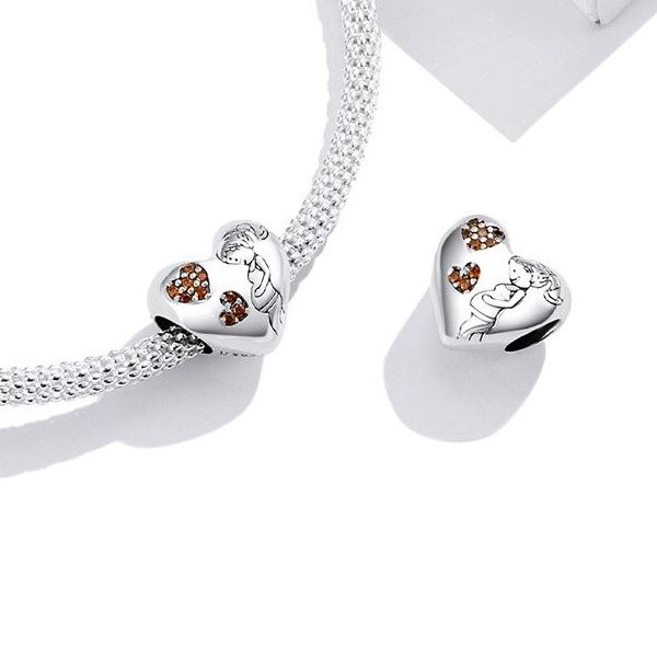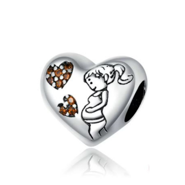 Vyrobený zo striebra, zdobený zirkónovým kryštálom, prívesok v tvare srdca s mamičkou. Dá sa nosiť na náhrdelníku alebo náramku. Veľkosť 1,1 x 1 cm, hmotnosť cca. 1,8 g.