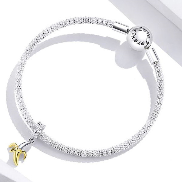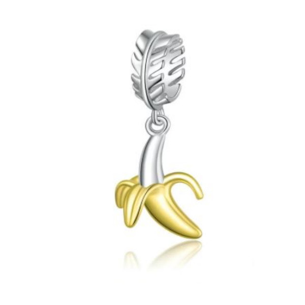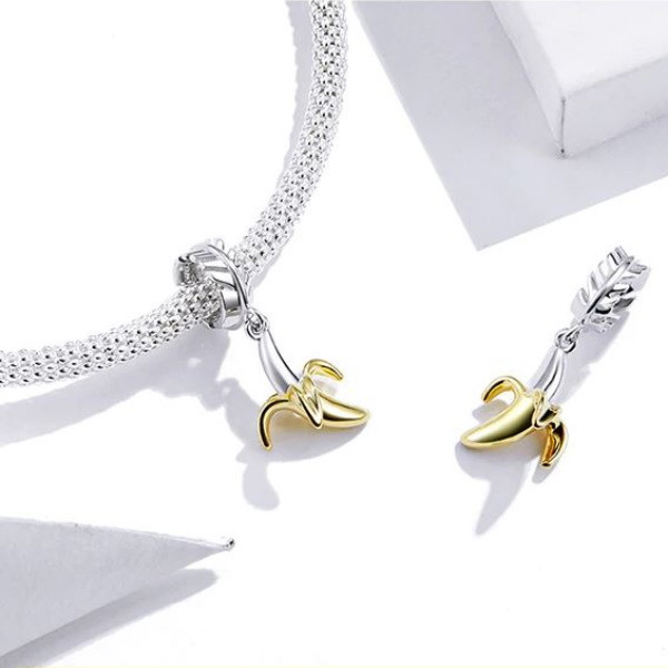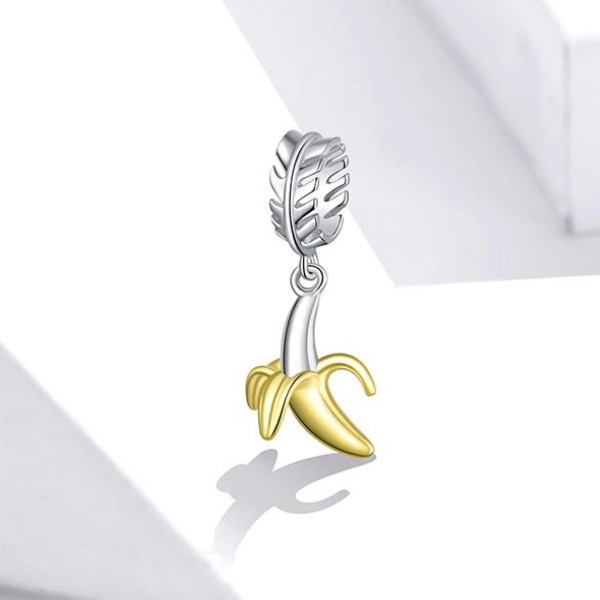 Zo striebra, čiastočne pozlátený, prívesok znázorňujúci banán na náramky a náhrdelníky. Veľkosť 2 x 0,7 cm, váha 1,1 g.