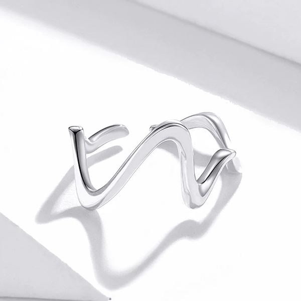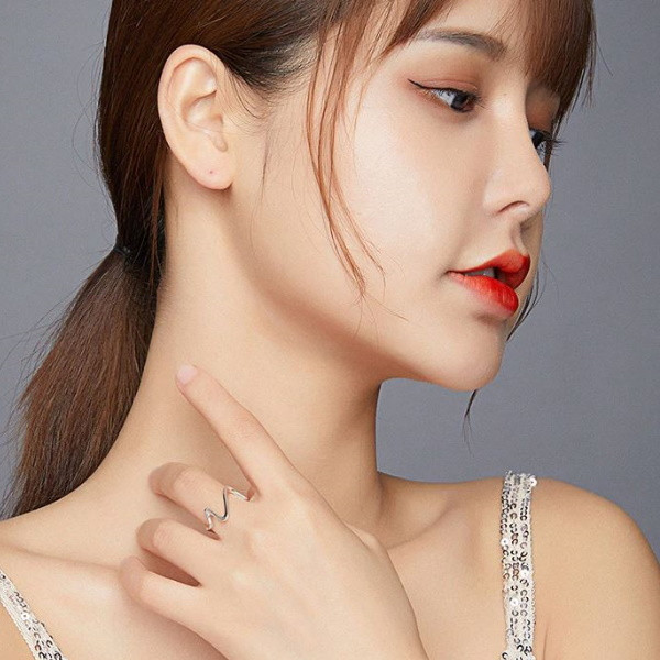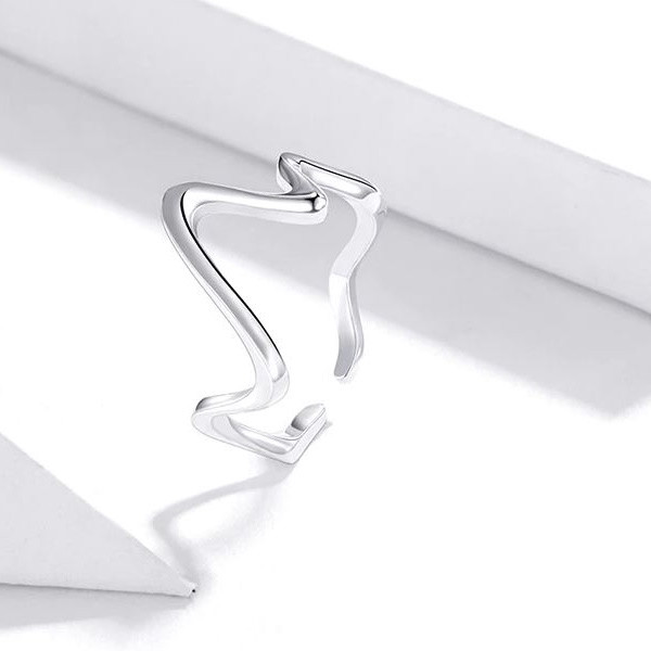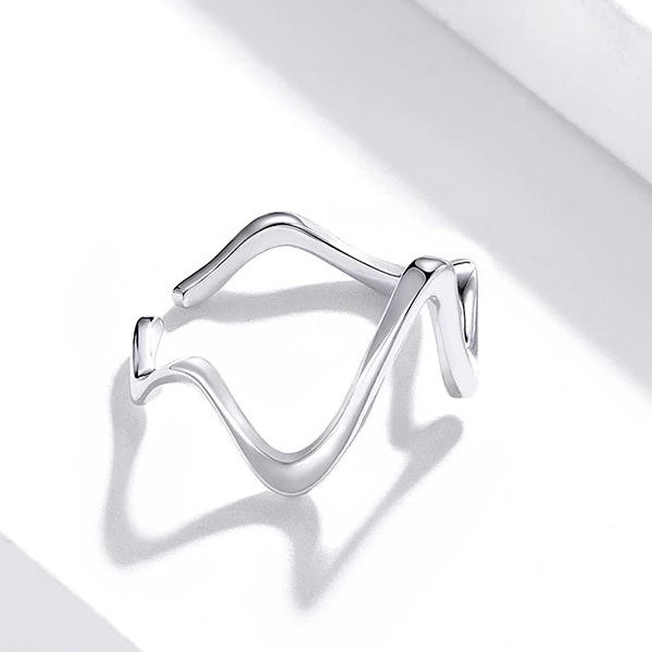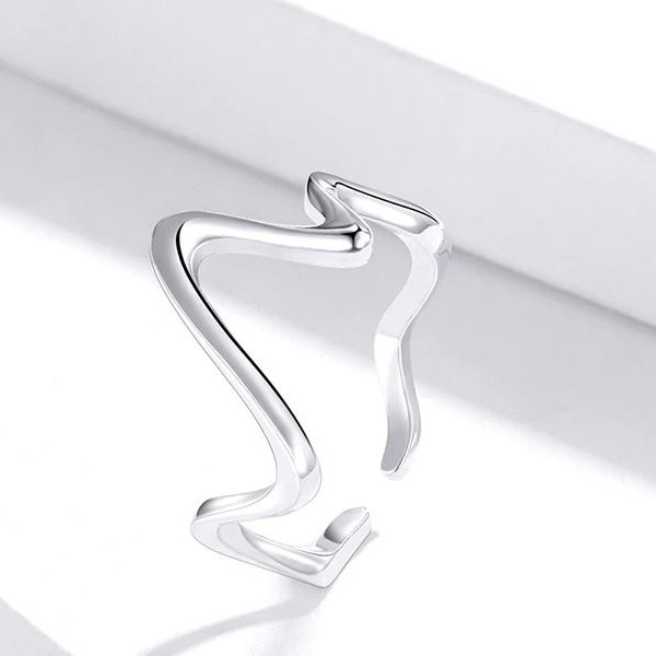 Dámsky prsteň v tvare vlny zo striebra. Hrúbka 0,15 cm, váha: 1,5 g.