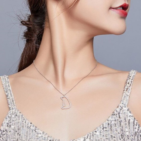 Náhrdelník zo striebra, s príveskom s vyobrazením ľadového medveďa zdobený zirkónovým kryštálom. Dĺžka retiazky je 45 cm, veľkosť prívesku 2,6 x 1,7 cm, váha 3,3 g.
