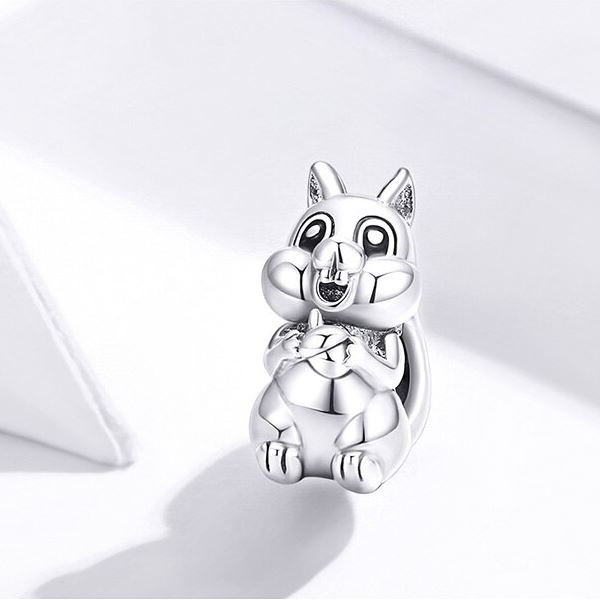 Veverička prívesok zo striebra. Dá sa nosiť na náhrdelníku alebo náramku. Veľkosť 1,2 x 1,2, hmotnosť 2,3 g.