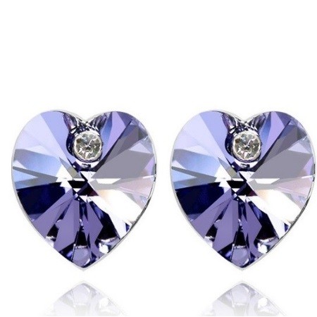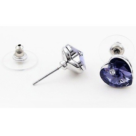 Srdiečkové náušnice, tanzanit, zdobené kryštálmi Swarovski