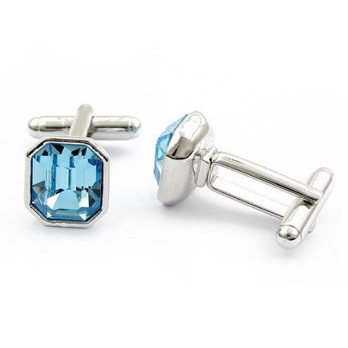 Manžetové gombíky, osemhranné, s kryštálom Swarovski, akvamarín