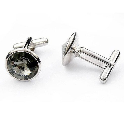 Elegantný okrúhly manžetový gombík vyrobený zo zliatiny zinku, zdobený kryštálmi Swarovski. Jeho hmotnosť je 12,60 g.