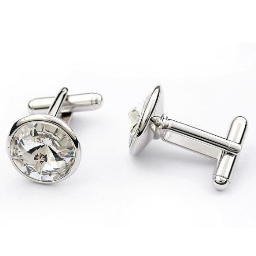 Elegantný okrúhly manžetový gombík vyrobený zo zliatiny zinku, zdobený kryštálmi Swarovski. Jeho hmotnosť je 12,60 g.