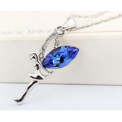 Náhrdelník s rozprávkovým príveskom, zafír, zdobený kryštálmi Swarovski
