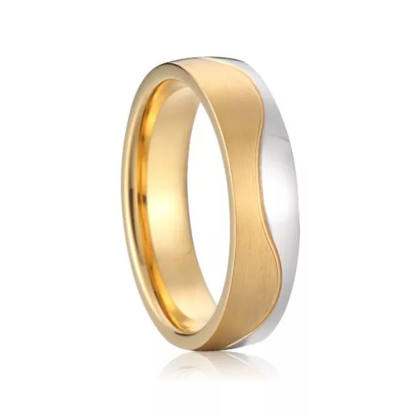 A gyűrű szélessége kb. 5 mm, így kényelmes viselést biztosít a mindennapokban. A nemesacél alapanyag tartósságot és karcállóságot garantál, míg az aranybevonat elegáns megjelenést kölcsönöz viselőjének.