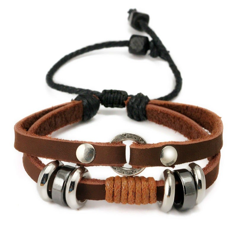 Náramok vyrobený z hovädzej kože s korálkami z nehrdzavejúcej ocele. Dá sa upevniť na šnúrku, takže má nastaviteľnú dĺžku. Jeho hmotnosť je 12 g.