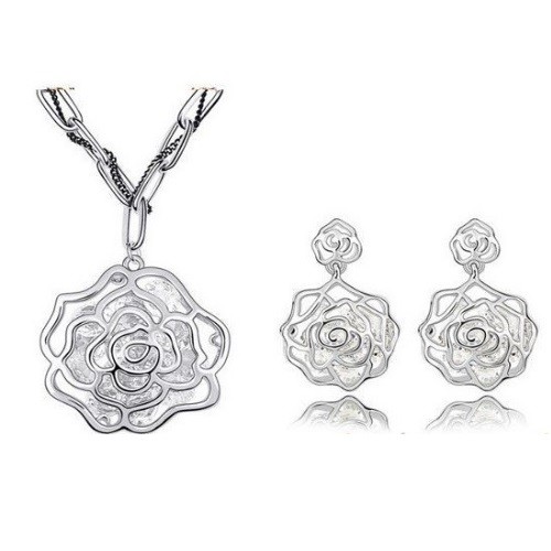 Rhodiované náušnice a náhrdelník s kryštálmi v tvare ruže.
