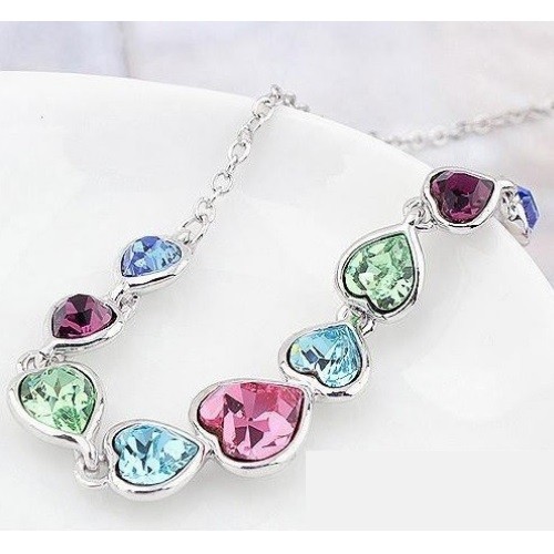 Rhodiovaný set náhrdelníka a náramku s niekoľkými tvarmi srdca, s kryštálmi Swarovski.