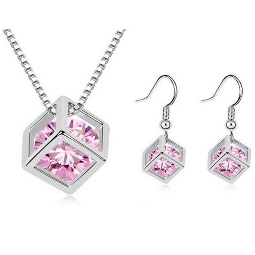 Súprava náušníc a náhrdelníka v tvare kocky, ružová