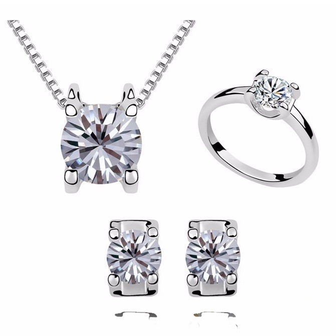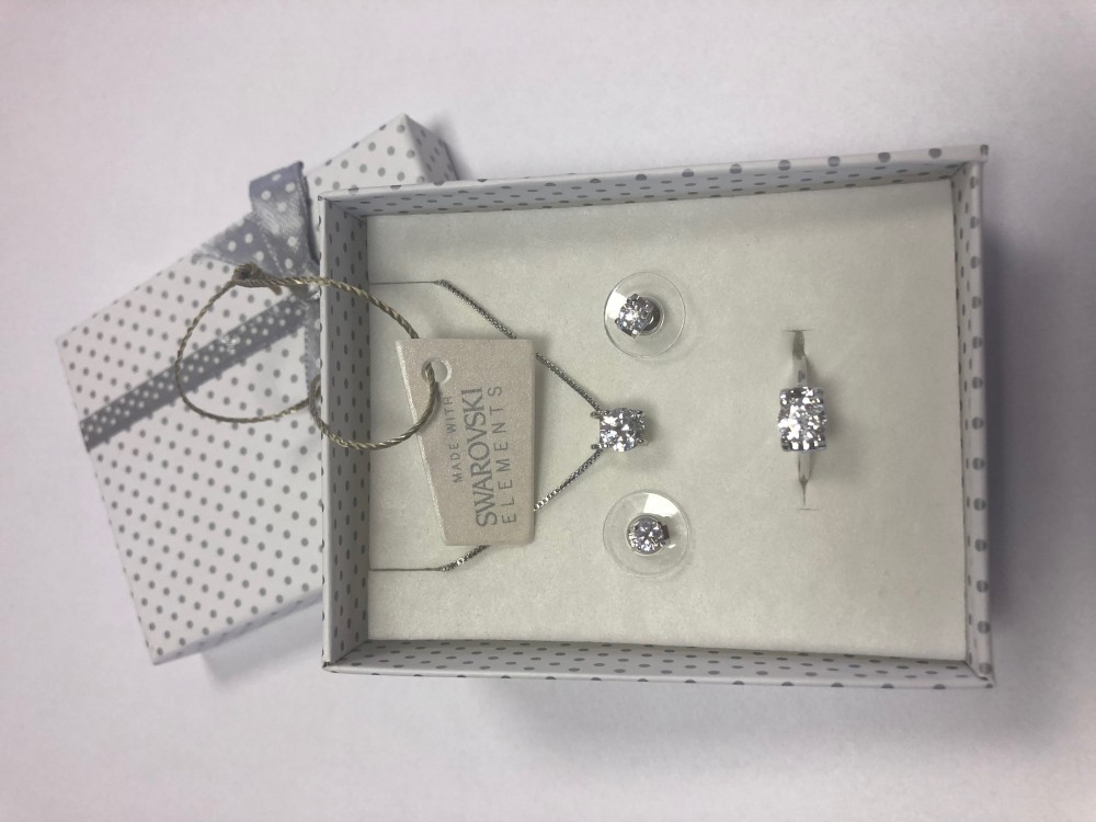 Elegantné rhodiované náušnice, náhrdelník a prsteň s kamienkami Swarovski.