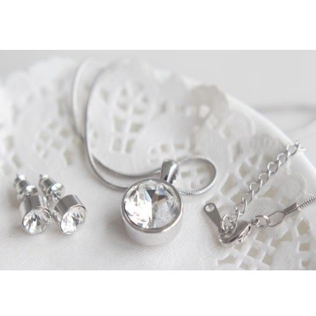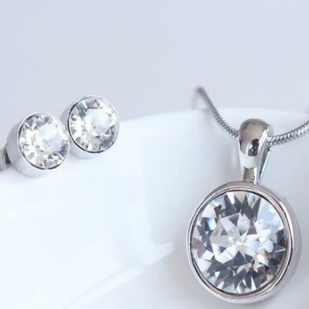 Elegantne vyzerajúce náušnice a náhrdelník zo zliatiny zinku a medi s kamienkami Swarovski.